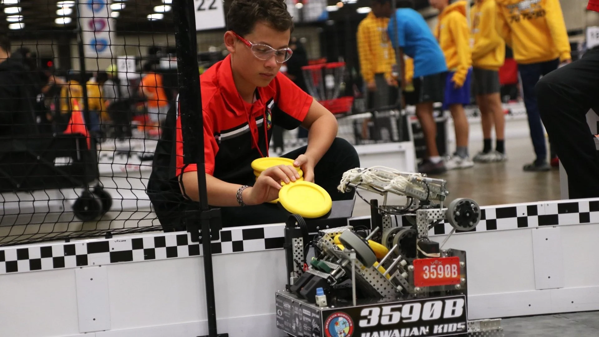 After the team tested all skills on the practice field, it was time to run their skills matches. After 3 attempts on driver and programming autonomous, Team 3590B was ranked 55th in the world. With a high score for driving skills of 134 and a high score of 75 for auto, the Hawaiian Kids’ total high score resulted in 209 points.