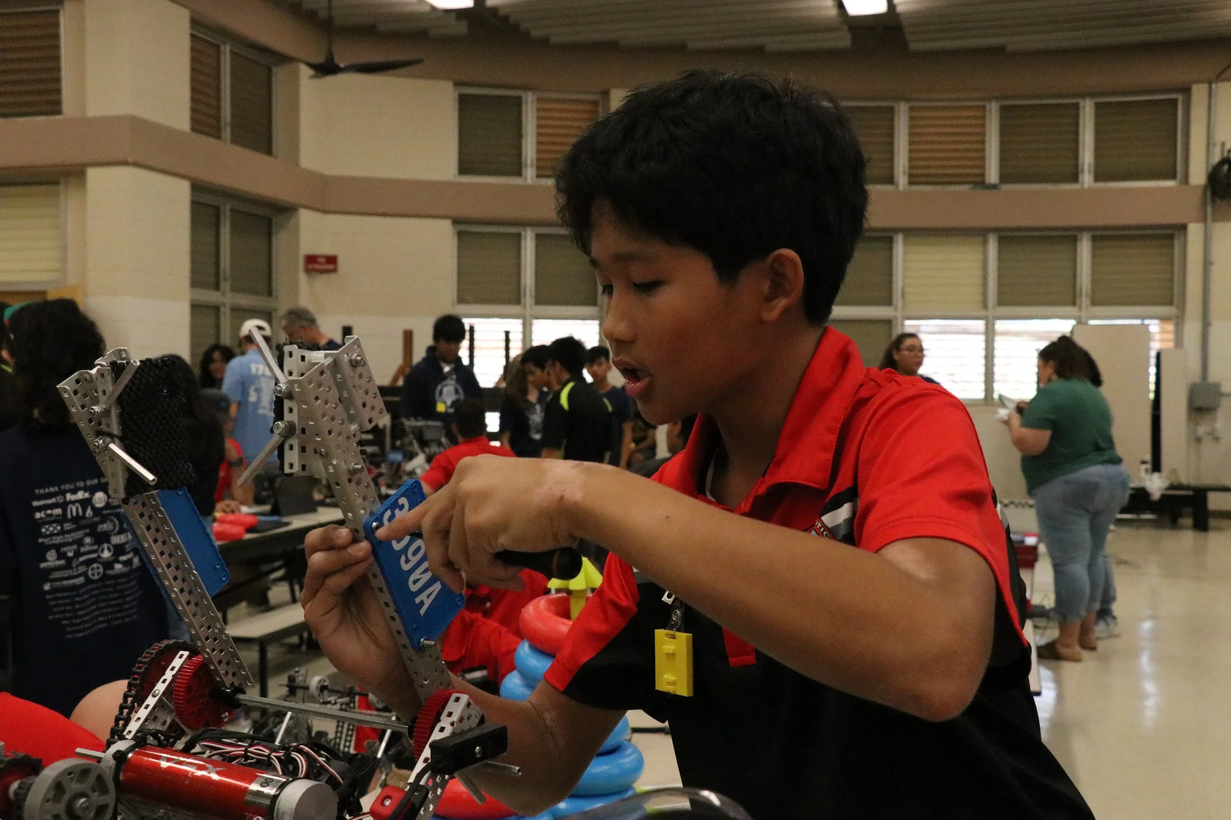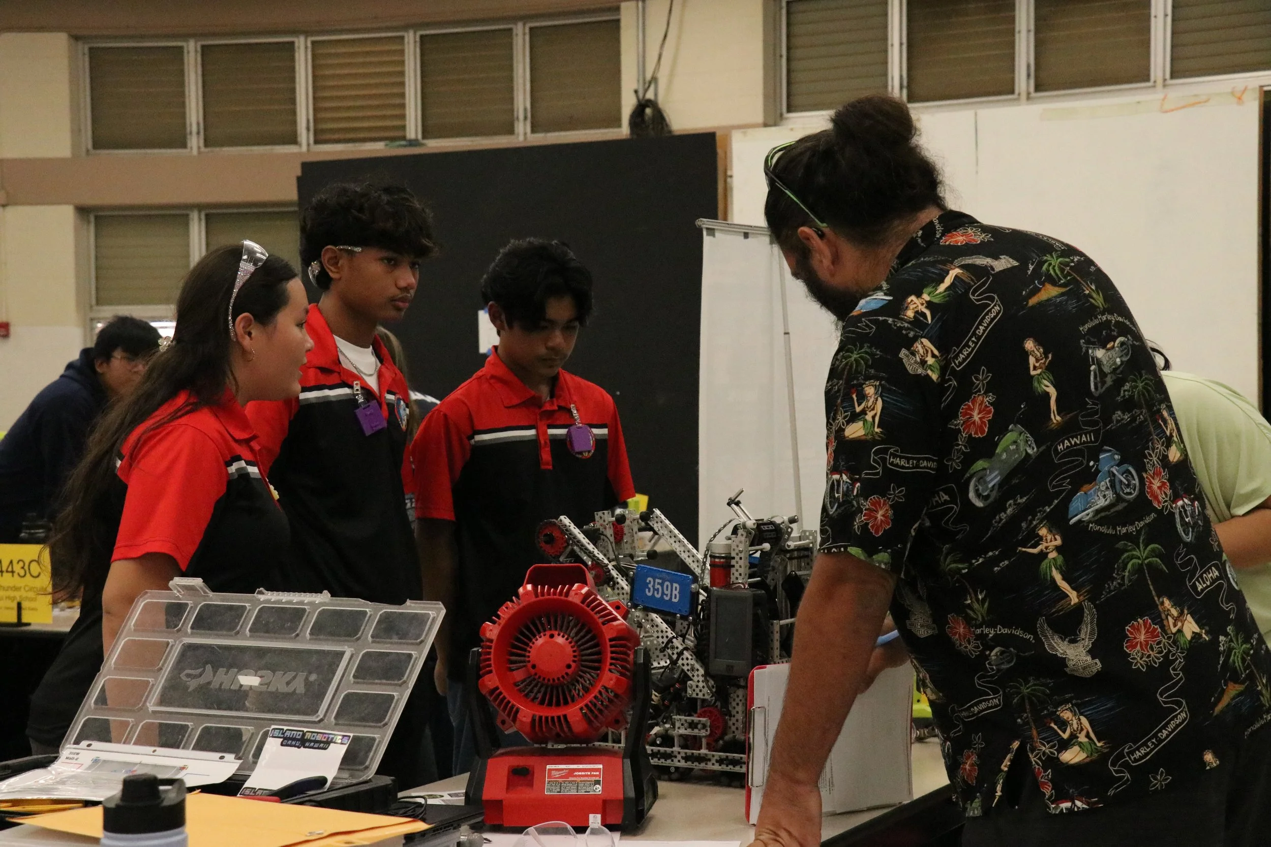 The anticipation was high as teams 359B, 359C, 3590A, and 3590D came together at Nanakuli High and Intermediate for an exciting competition. Setting up their pits, the teams promptly prepared their robots for the essential inspection process. Having completed the inspections, they focused on enhancing their robots' performance and capabilities, applying final adjustments and tweaks. Our young competitors looked forward to witnessing their robots come to life!