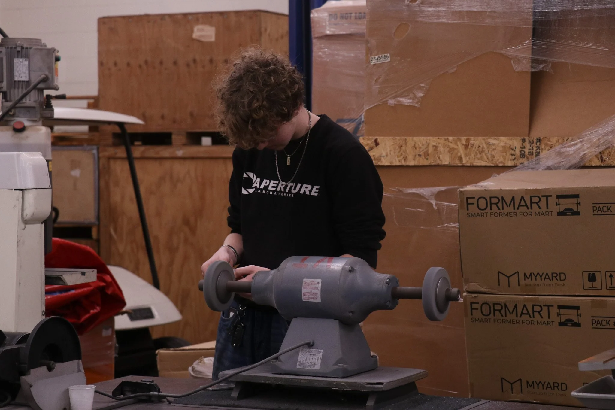 It's the eleventh day of build season, however it was another uneventful day for this week. Control systems were not as busy as the day before, but got prepared once again for the alpha bot. Construction was making more extra parts for the robot and water jetting them, while also CADing more of the parts and finishing up the alpha bot with new parts for Control Systems. Business, Media, and Documentation were continuing to take photos and video clips for the week, busying themselves with what comes their way. Even if today was more uneventful, it was still a great work day and we can't wait to see what's next!