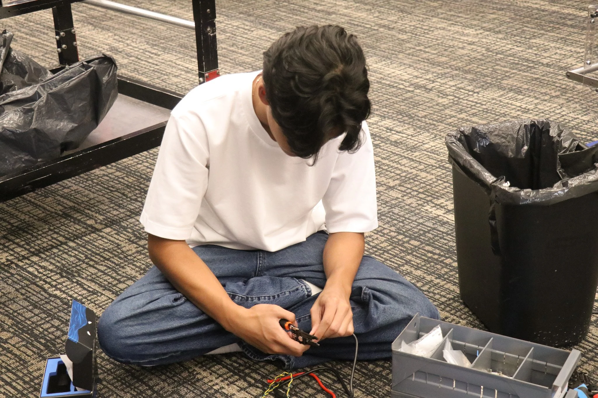 It’s day forty-six, and we are getting closer to the end of build season! The Control Systems subteam worked on the spare parts and changed some of the wiring on the competition robot. After changing the wires, they also ran autos on the practice field. The Construction subteam continued helping the Control Systems subteam with autos and spare parts. The Business, Media, and Documentation subteam continued taking photos of today’s progress and of what our subteam has done. They also recorded clips and took pictures for the robot reveal, and practiced their FIRST Impact Award presentation. As the day came to a close, our subteams continued to work hard towards the end of build season!