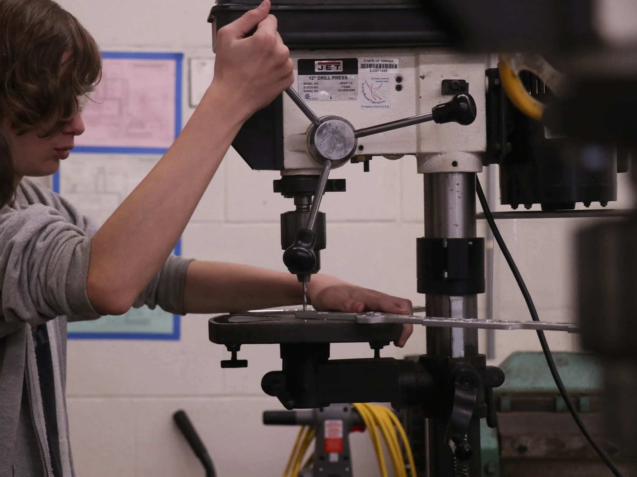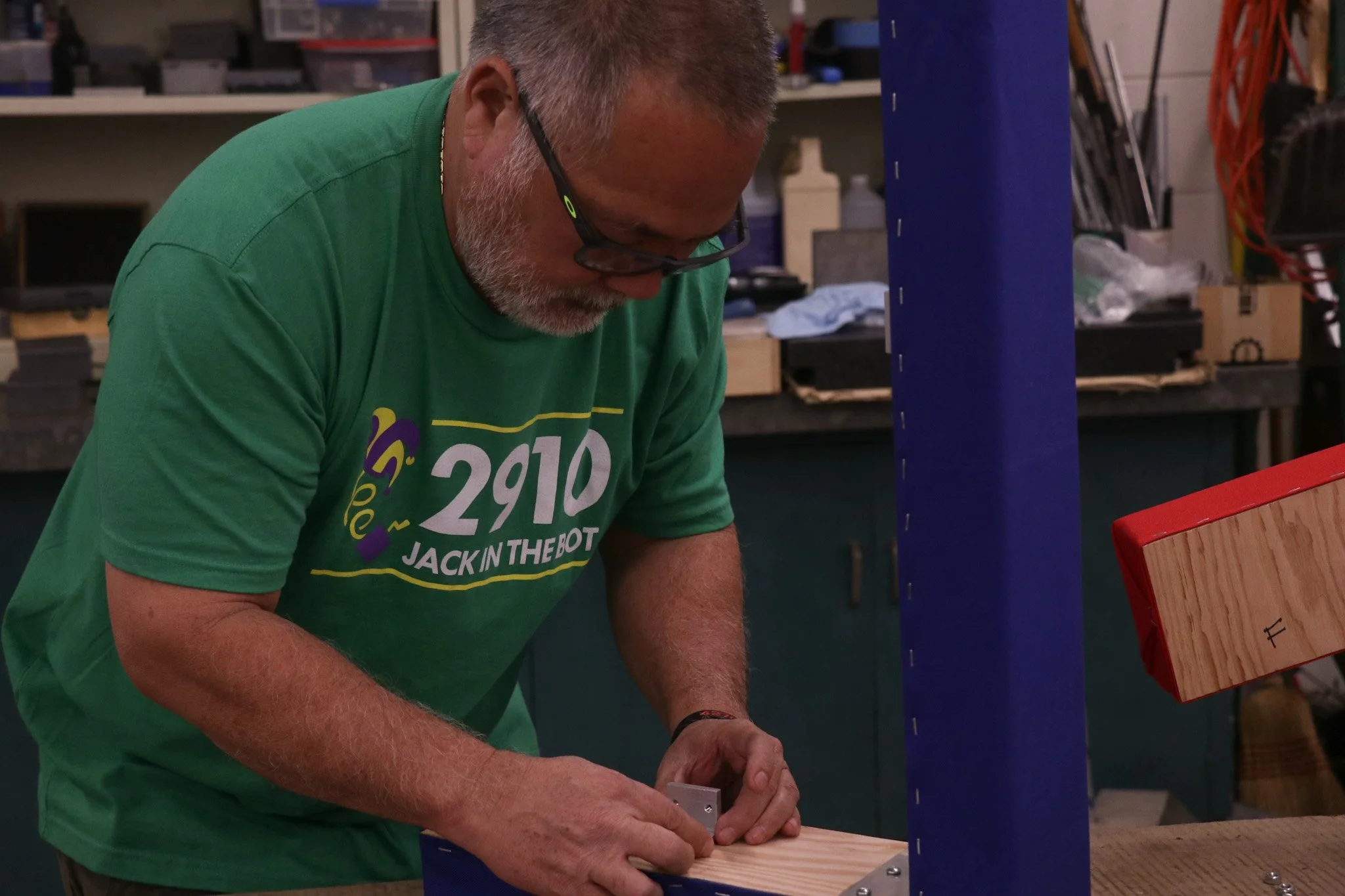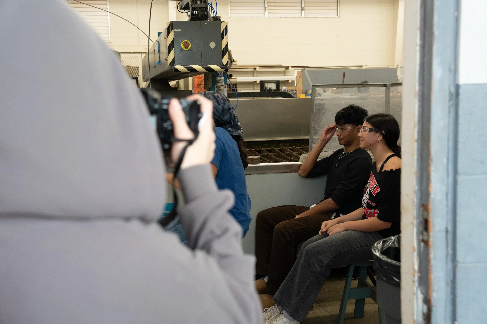 We are back with day sixteen and week three! The Control Systems subteam started the day with recalibrating the lime lights, wiring the motors, and preparing the devices for the main season robot. The Construction subteam busied themselves with continuing to CAD minor adjustments to the robot, teaching students how to work more of the various machines, waterjetting more adjustment robot parts, and making the alphabot bumpers. The Business, Media, and Documentation subteam started taking photos and clips for week 3, filmed the interviews for the week 2 recap, and continued to work on the Executive Summary Questions. We end the day on cloud nine, and we can’t believe how busy we’ve been today!