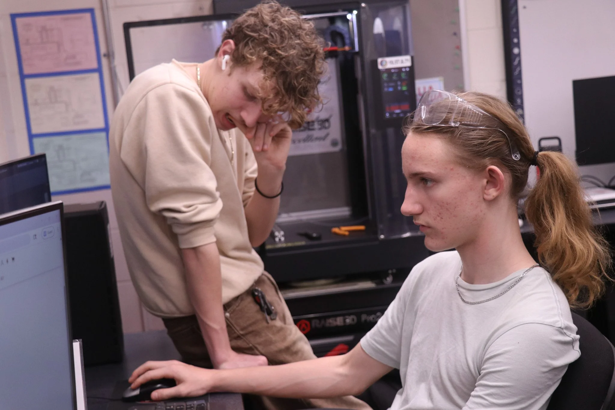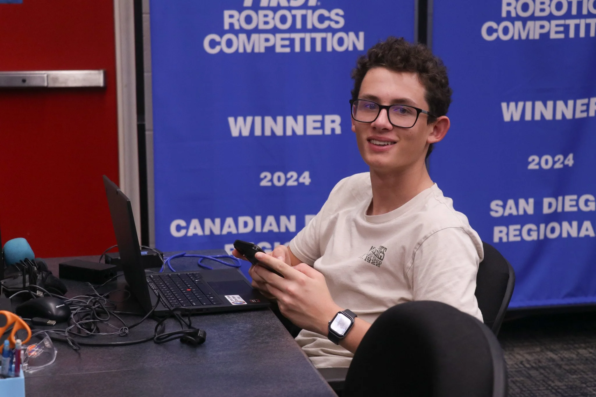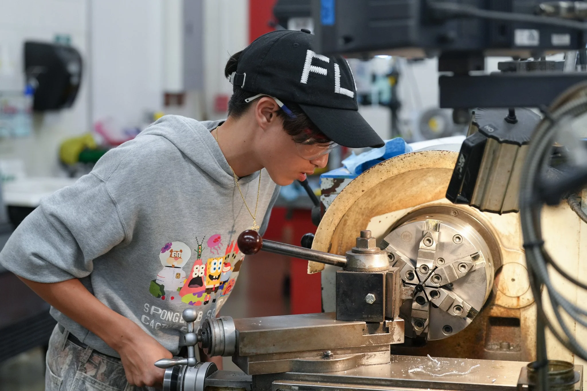 We are back with day sixteen and week three! The Control Systems subteam started the day with recalibrating the lime lights, wiring the motors, and preparing the devices for the main season robot. The Construction subteam busied themselves with continuing to CAD minor adjustments to the robot, teaching students how to work more of the various machines, waterjetting more adjustment robot parts, and making the alphabot bumpers. The Business, Media, and Documentation subteam started taking photos and clips for week 3, filmed the interviews for the week 2 recap, and continued to work on the Executive Summary Questions. We end the day on cloud nine, and we can’t believe how busy we’ve been today!