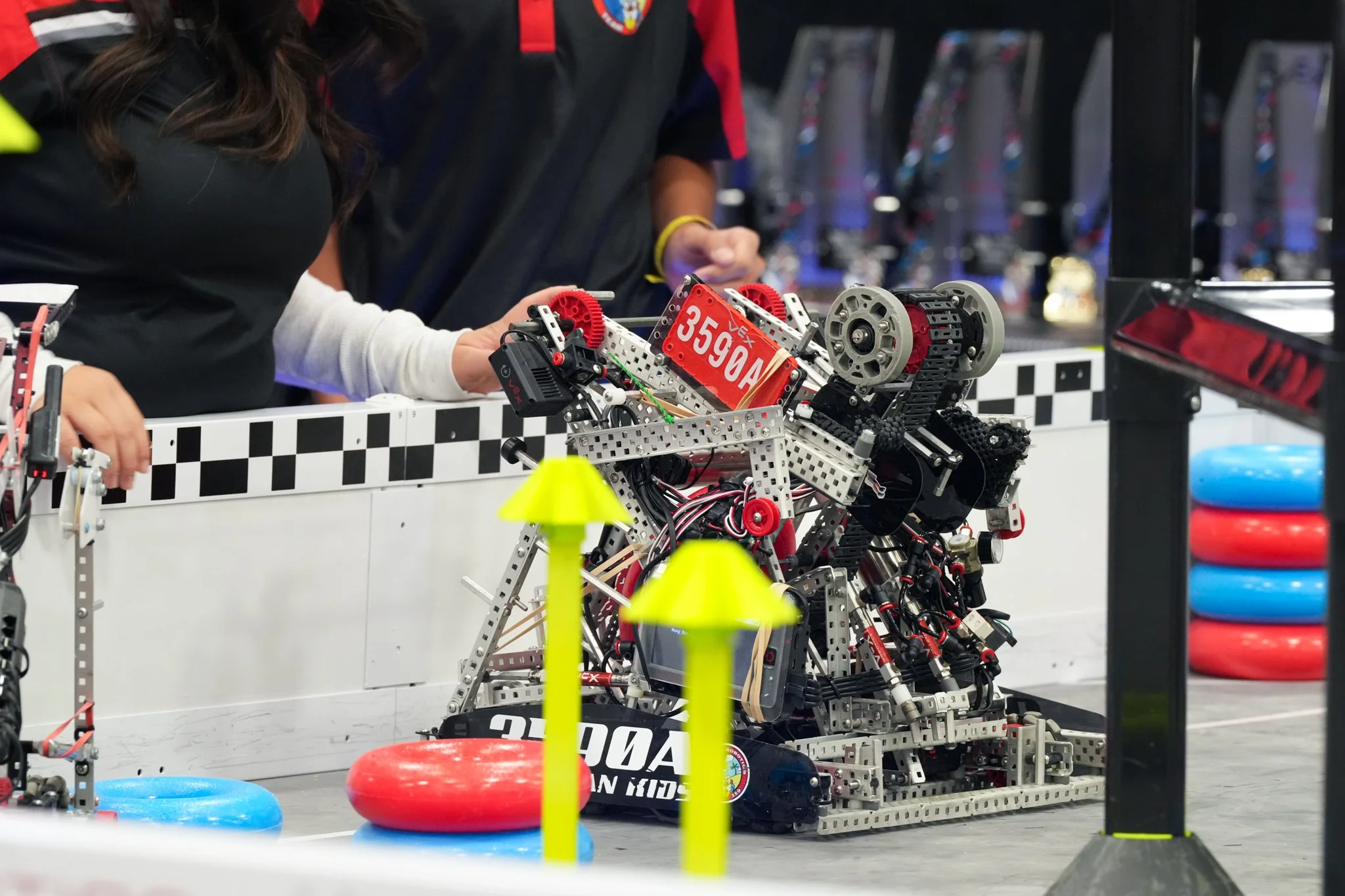 On May 19th, 2025, the Kay Bailey Hutchison Convention Center Dallas buzzed with excitement as Teams 3590A and 3590C arrived for the 2025 VEX VRC Middle School World Championship! Out of over 20,000 teams, only 483 competed! The teams quickly settled in and had their robots inspected, getting ready to face the competition with determination and teamwork. Both teams spent time strategizing and brainstorming ideas to perform their best in the matches ahead.